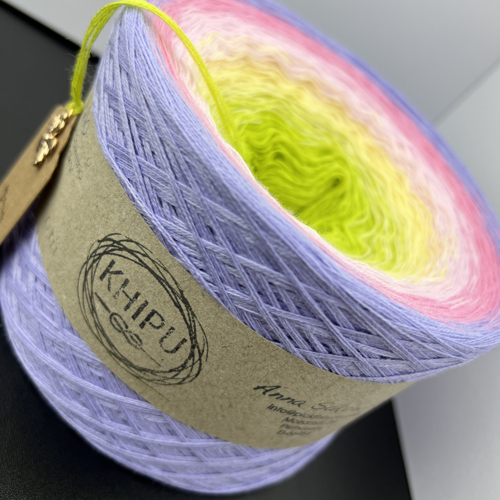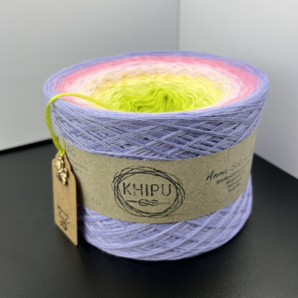 Khipu eignen sich ideal zum Stricken und Häkeln. Sie herstellen daraus schöne Tücher und Schals mit einem Ombre-Effekt.