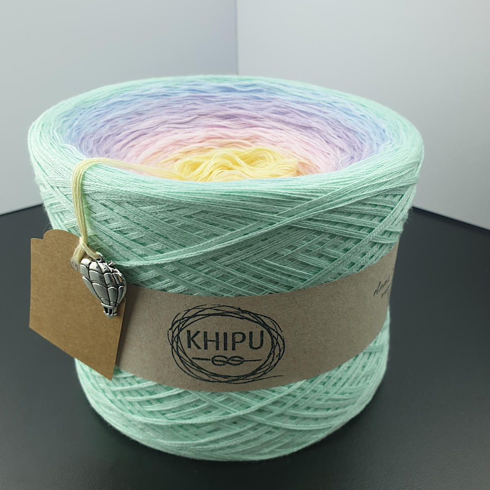 Khipu eignen sich ideal zum Stricken und Häkeln. Sie herstellen daraus schöne Tücher und Schals mit einem Ombre-Effekt.