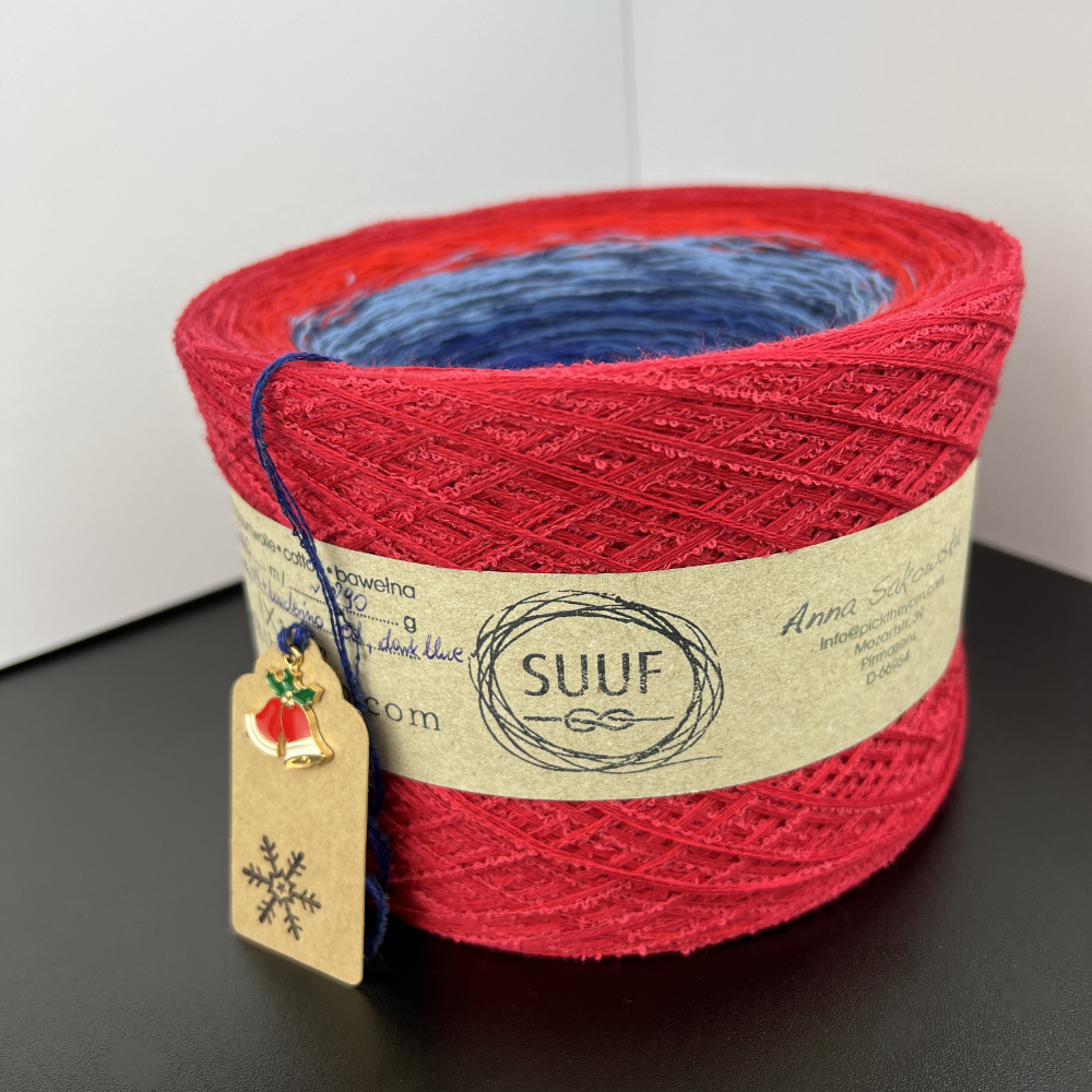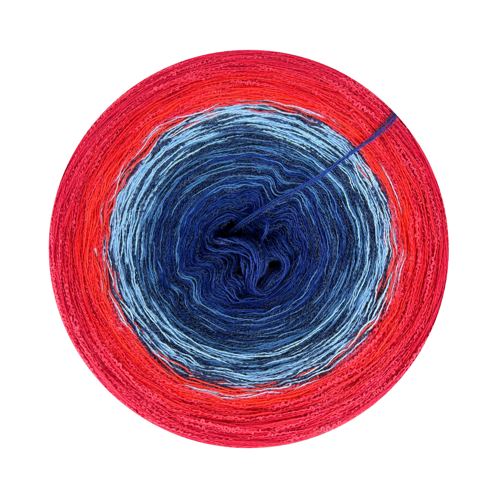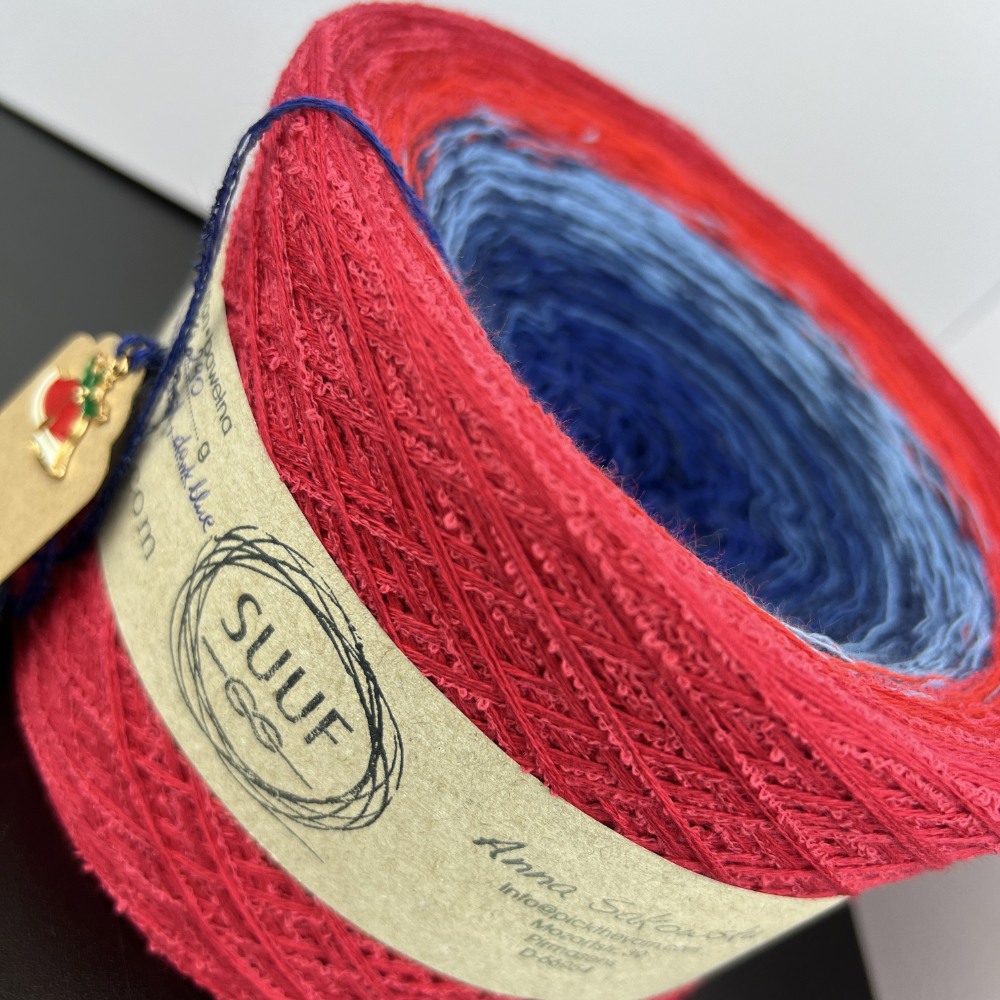 Farben: 7P Cosmo – dunkelblau • RD Elba – dunkle jeans • UC Petalo – blau • ZL Agrumi – intensives rot • 8B Tulipano – tulpenrot • L1 Rosso – rot + Bouclegarn in dunkelblau und rot