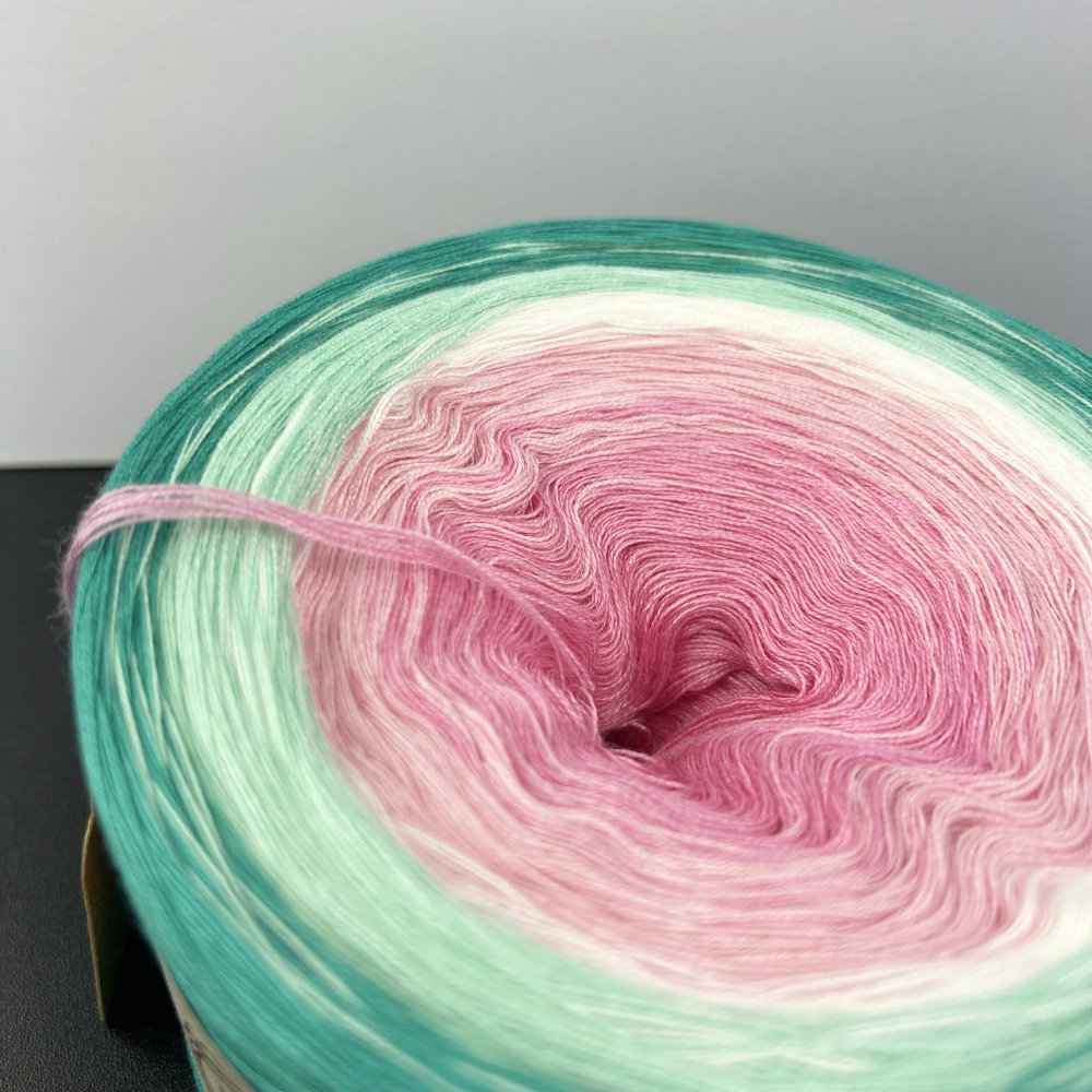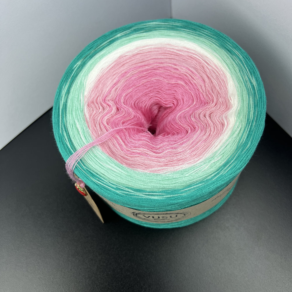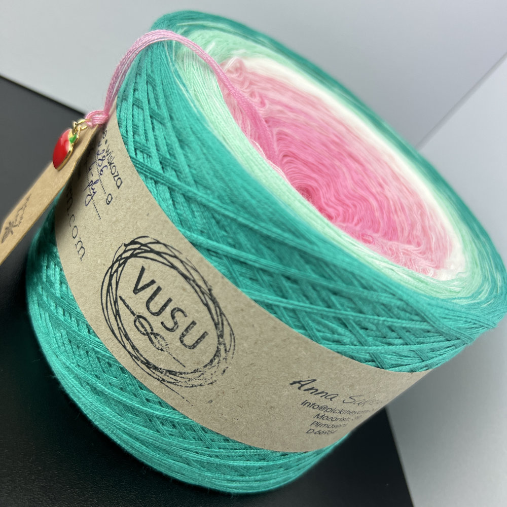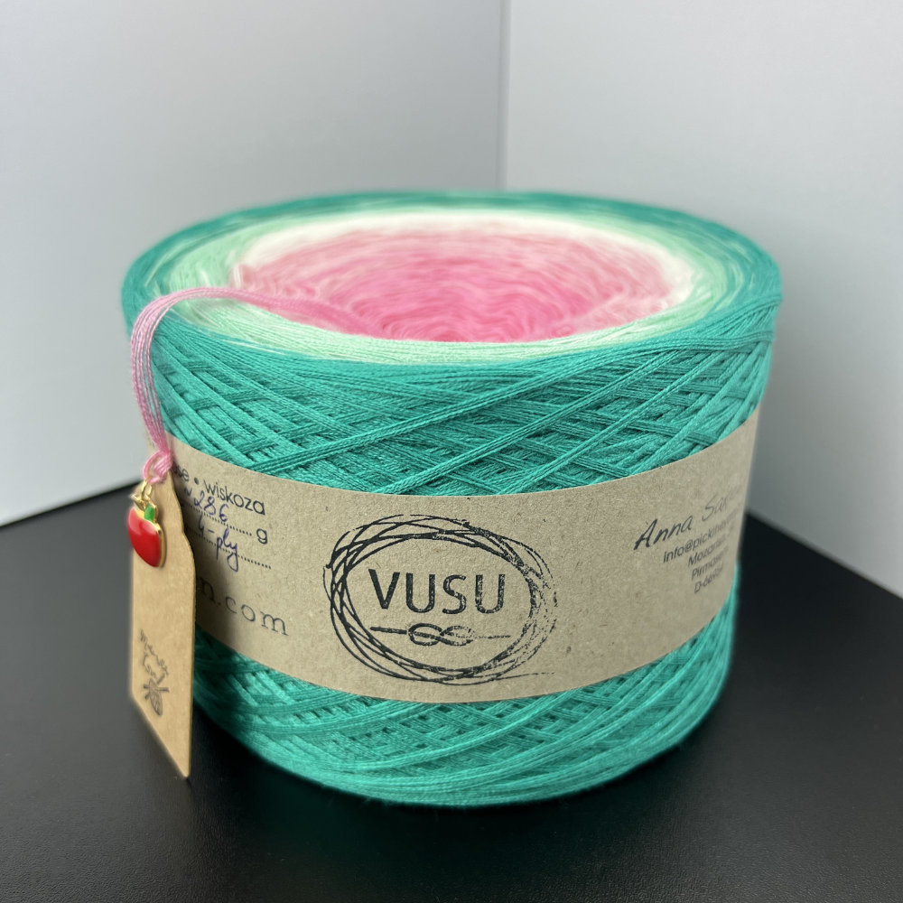 Motki VUSU to 100% wiskoza o przepięknym delikatnym połysku, przyjemna w przerabianiu i idealna na letnie bluzki, topy i inne części garderoby. Kolory w motku zmieniają się płynnie, za każdym razem zastępowana jest tylko jedna nitka, a supełki są niewidoczne w gotowej robótce